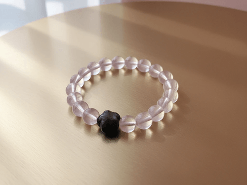 「是不是既想吸引美好緣分,又怕被打擾太多?這條手串以清新溫柔的六芒星光粉晶搭配堅固守護的星型金曜石,彷彿將柔情與防護完美結合,讓你隨心展現不俗魅力!」
