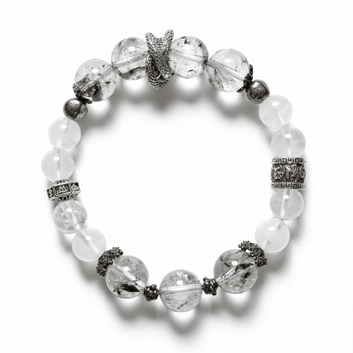 以黑閃靈鑽與喜馬拉雅白水晶編結,為七月點亮一圈清淨護光。