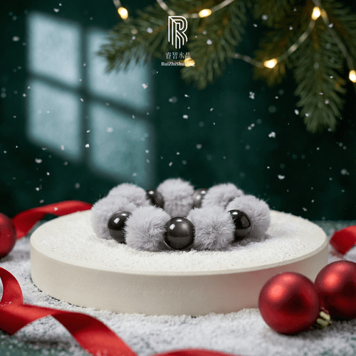 極夜守門人|銀曜石、灰色毛球|設計款水晶手串