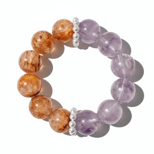 「喜歡大咪數的朋友絕不能錯過!這條手串融合了紅膠花和薰衣草紫水晶,各占一半,營造出鮮明對比的視覺感受,再以小珍珠精緻隔開,讓整體設計分外清晰、層次豐富!」