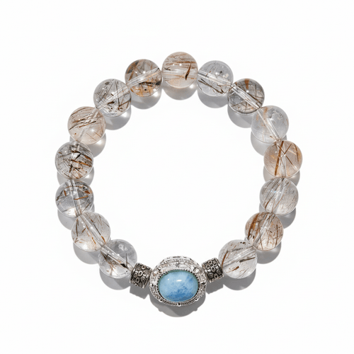 「你是否在忙碌中渴望那份純淨,讓心靈如湖水般平靜?這條手串以清透的黑金超和獨特海紋石魔方打造,彷彿讓深海的寧靜與潔淨能量隨著每個動作流動,注入無限正面祝福!」