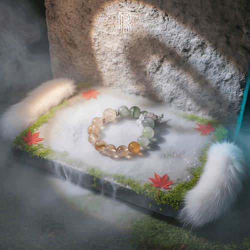 《狐耀盛世》融合黃水晶九尾狐、岫玉青提奶蓋、鈦金水晶、黃膠花四大強運能量寶石,為你開啟事業騰飛、財運倍增與魅力綻放的全新格局,讓你在人生的舞台上耀眼無比,成就盛世輝煌!