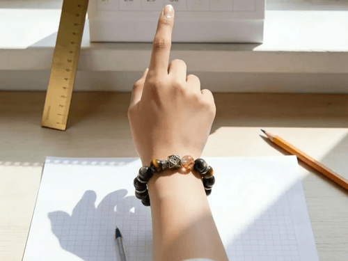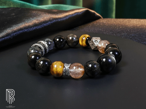 「生活忙碌時,是否覺得心力交瘁?這條手串將滿景綠幽靈、金曜石、黃虎眼與黑金超巧妙結合,為你注入自然能量與堅定保護,讓心境保持平衡與清晰!」