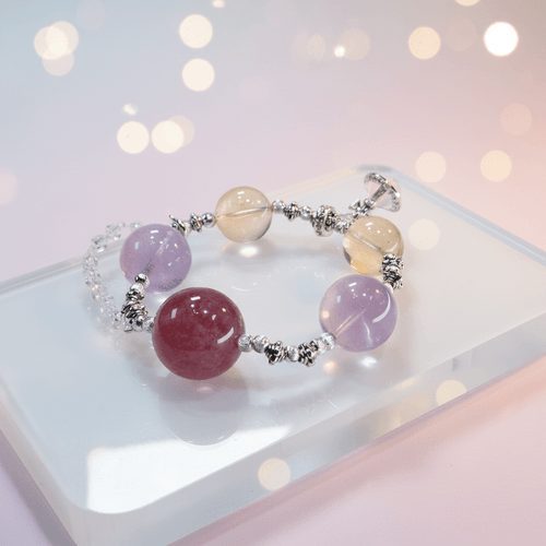 • 甜心引力 · 超大珠隨型手串|超大MM數草莓晶、薰衣草紫水晶、六芒星黃水晶|桃花與好人緣|情緒療癒|自信吸引力|好運加速|睿智水晶設計款水晶手串
