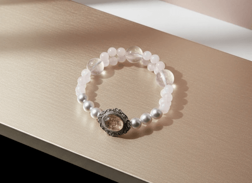 「有沒有感覺生活需要點夢幻般的柔光?這條手串將六芒星光粉晶、芙蓉粉晶、珍珠,再搭配幽靈水晶魔方的獨特設計完美結合,彷彿把閃爍的星光與夢想注入你每個動作中,讓心情隨著美好能量流轉!」