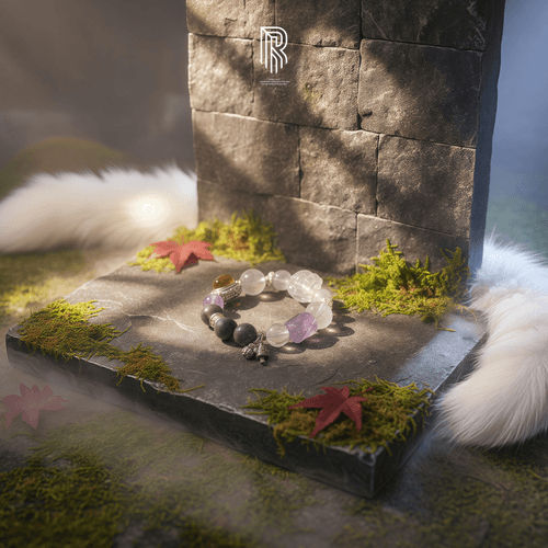 《甜心守護》精心結合粉水晶愛心狐、幽靈水晶、粉水晶、銀曜石與財神爺錢袋子飾品,象徵愛情、智慧、保護與財富,幫助你擦亮眼睛,不再被花言巧語迷惑,讓真正的幸福降臨。當你擁有穩定的內在價值,就不會輕易被廉價的感情欺騙,因為 「手上有糖,才不會被渣男的甜言蜜語輕易騙走!」 🍬✨