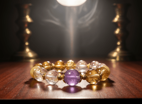 「感覺生活有時讓你分心亂如麻?這條手串融合薰衣草紫水晶的寧靜、暴力黃水晶的火熱、清透黑金超的明澈和金虎眼的果斷,猶如虎嘯般帶來堅定與靈性守護!」