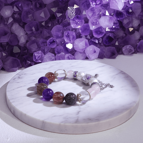 《優雅之光》融合粉水晶、珍珠、黑金超、烏拉圭紫水晶四種能量寶石,以愛為基石、以智慧為引領,讓佩戴者在溫柔中展現力量,在優雅中保持堅定,吸引幸福人際,開啟智慧人生!💖✨
