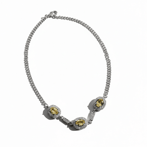 ✧ 凈體黃水晶主石,橢圓切面晶透剔亮,呈柔和金色光暈。