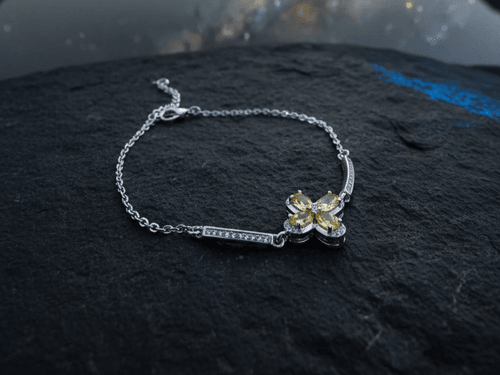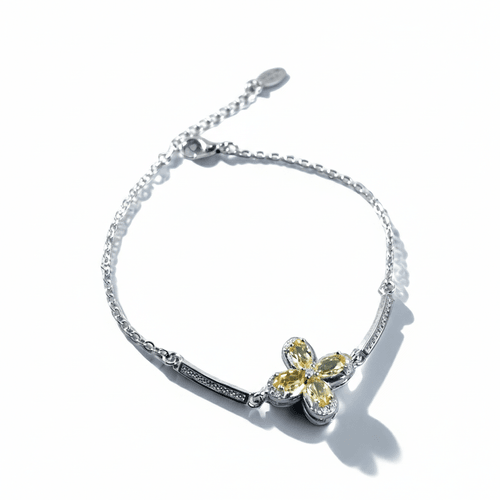 ✧橢圓切割黃水晶組成四瓣幸運花,色澤明亮。