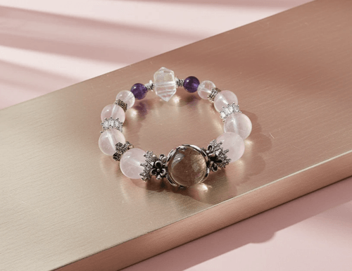 茶阿賽x莫桑粉晶x白水晶x烏拉圭紫水晶【粉光濾鏡】—— 柔和暖意與清澈思維
